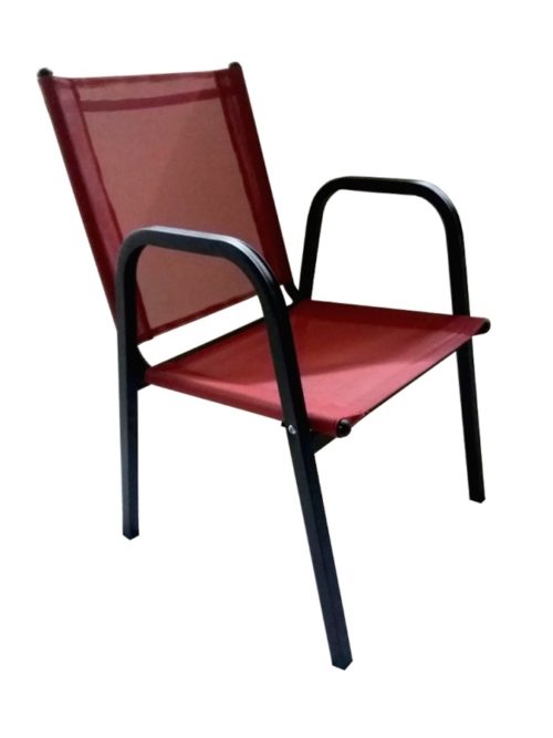 Μεταλλική καρέκλα-πολυθρόνα χρώματος μαύρου με διάτρητο μπορντό πανί. Επιλογές: -χρώματος σκελετού, -χρώματος διάτρητου πανιού. -
