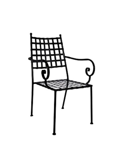 Τα έπιπλα από μέταλλο αποτελούν σίγουρα την πιο κλασική και διαχρονική επιλογή. Aν θέλετε να διακοσμήσετε το μπαλκόνι σας σύμφωνα με την τελευταία λέξη της μόδας, μπορείτε να εμπιστευτείτε απλά το ένστικτό σας δημιουργώντας μια βεράντα ή έναν κήπο που θα αρέσει σε εσάς φτιάχνοντας το πιο όμορφο και χαλαρωτικό περιβάλλον για εσάς και την οικογένειά σας. Στιβαρή και μεγάλης αντοχής καρέκλα - πολυθρόνα ιδανική για εξωτερικούς χώρους. Χρώμα: Μαύρο Διαστάσεις: 55,5x60x92 εκ. Ύψος μπράτσου: 66,5 εκ. Ύψος καθίσματος: 42 εκ. Διάσταση καθίσματος: 43,5x46 εκ. -