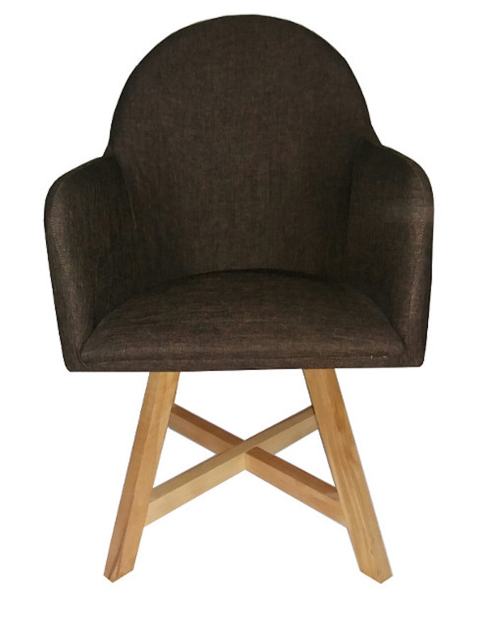 Πολυθρόνα με ξύλινο σκελετό και κάθισμα επενδυμένο με ύφασμα.