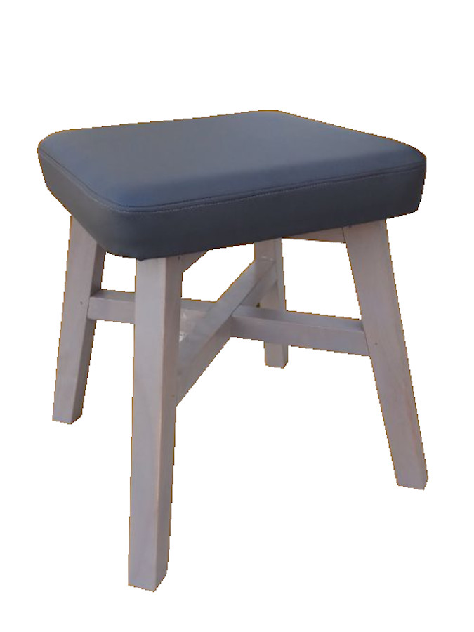 Χαμηλό σκαμπό από ξύλο και δερματίνη.