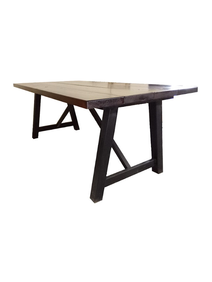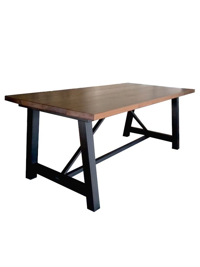 Τραπέζι με μεταλλικό σκελετό με επιφάνεια μασίφ ξύλο.