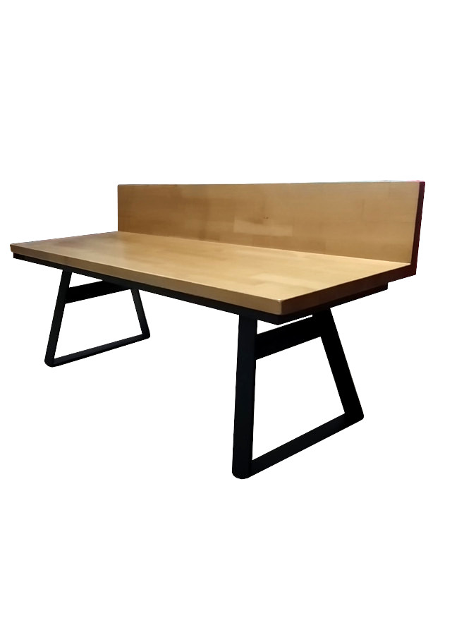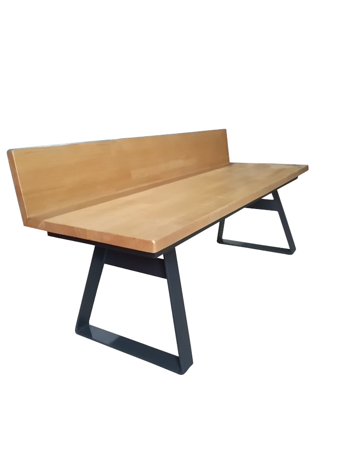 Παγκάκι με μεταλλικό σκελετό και κάθισμα από μασίφ ξύλου.
