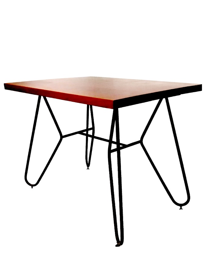 Τραπέζι με μεταλλικό σκελετό και με καπάκι από ξύλο.