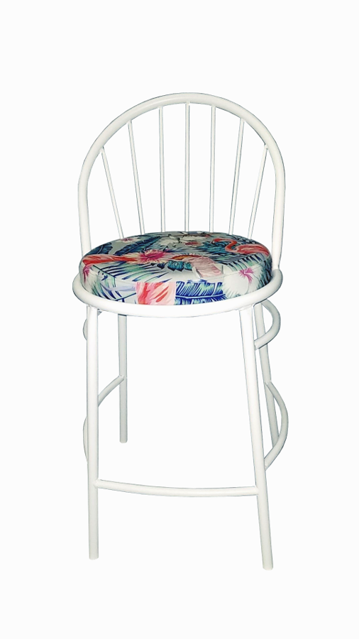 Σύγχρονο μεταλλικό σκαμπό – χρώμα σκελετού λευκό. Έχετε την δυνατότητα επιλογής χρώματος του σκελετού, για το μαξιλάρι ύφασμα ή δερματίνη και το ύψος που σας εξυπηρετεί.