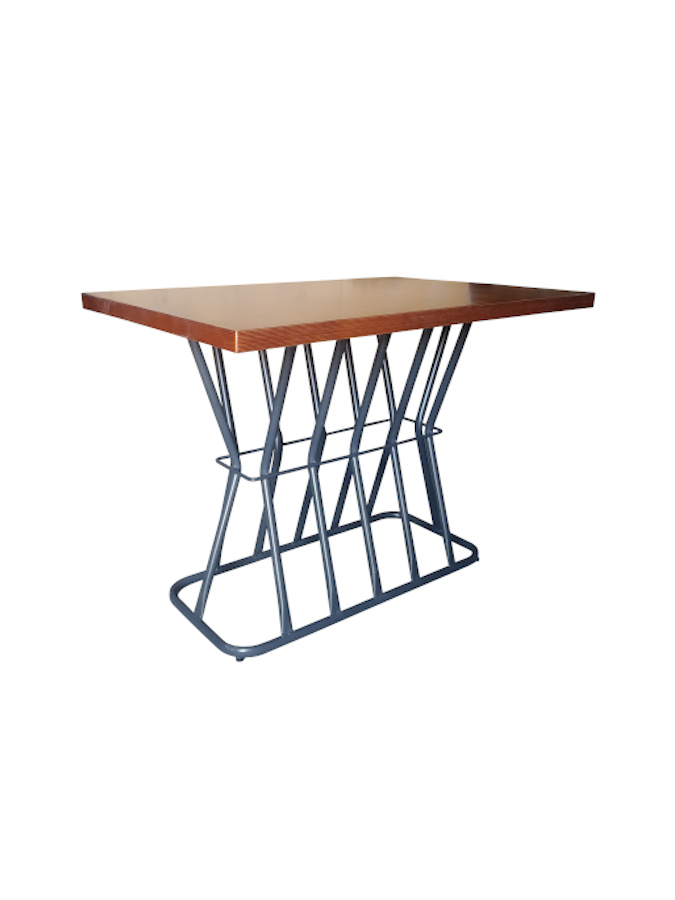 Σταντ/τραπέζι με μεταλλικό σκελετό και επιφάνεια ξύλο κόντρα πλακέ.