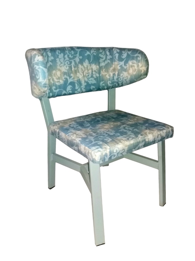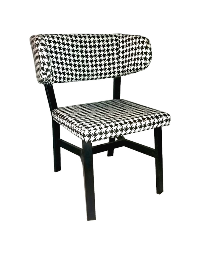 καρέκλα με μεταλλικό σκελετό χρώματος μαύρου και επενδυμένο με ύφασμα ασπρόμαυρου χρώματος η το κάθισμα και η πλάτη.