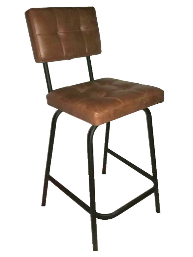Σκαμπό με μεταλλικό σκελετό και επενδυμένο με δερματίνη.