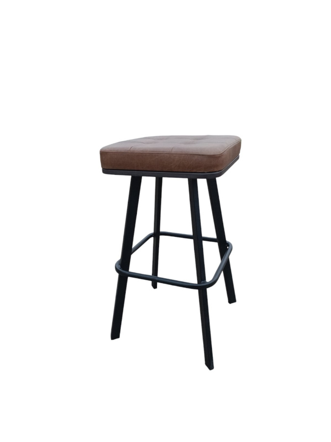 Σκαμπό με μεταλλικό σκελετό και κάθισμα επενδυμένο με ύφασμα.
