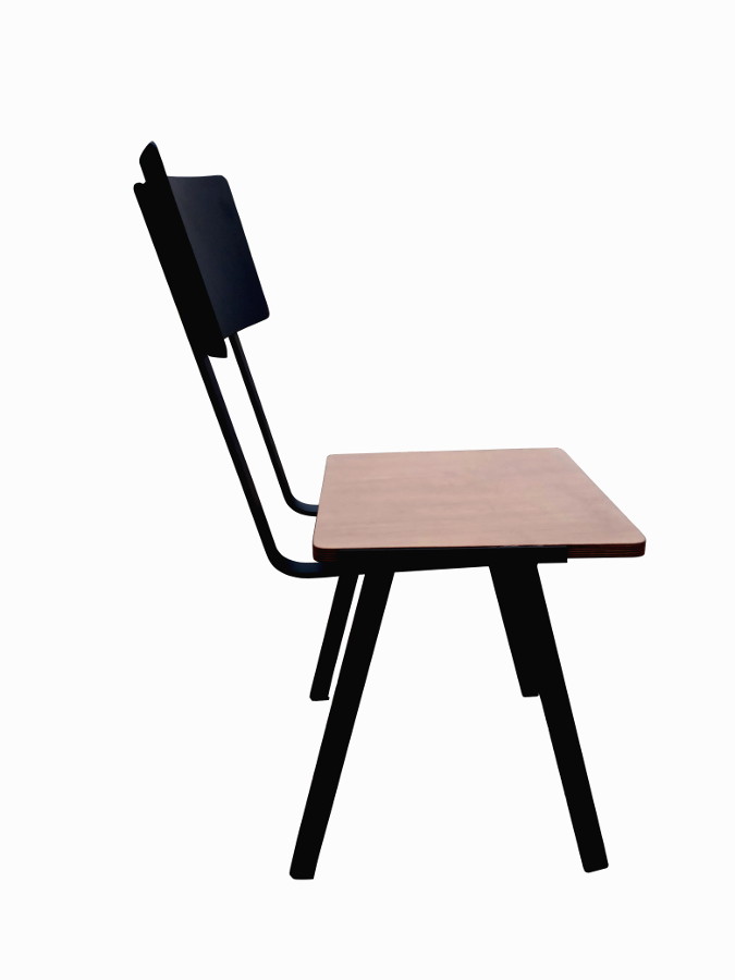 Μεταλλική καρέκλα με ξύλο στο κάθισμα.