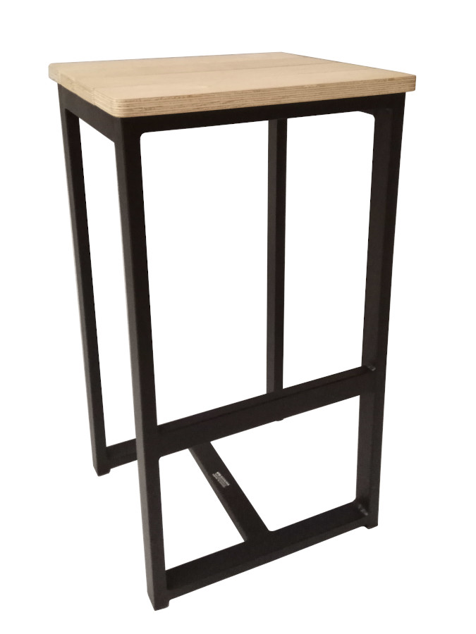 Σταντ με μεταλλικό σκελετό και με ξύλο στην επιφάνεια.