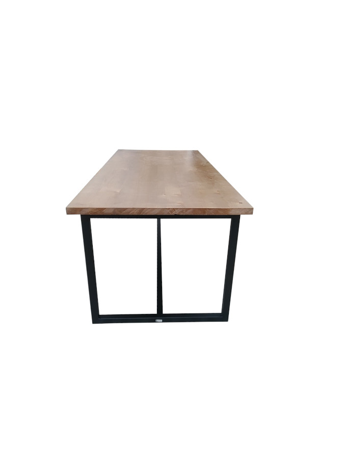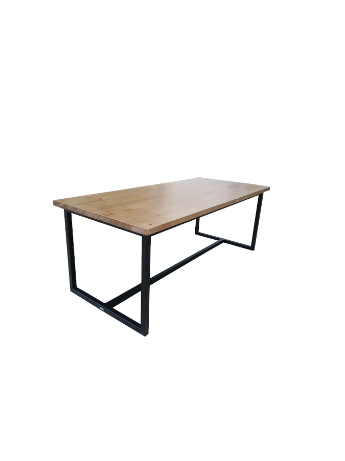 Τραπέζι με μεταλλικό σκελετό και επιφάνεια μασίφ πεύκο.