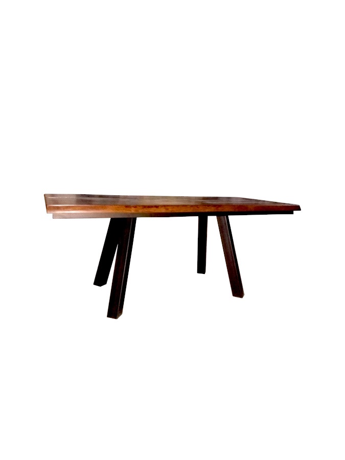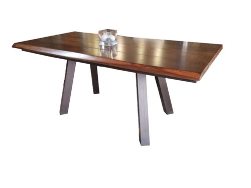 Μεταλλικός σκελετός με επιφάνεια μασίφ ξύλο οξιάς σε απόχρωση καρυδί.