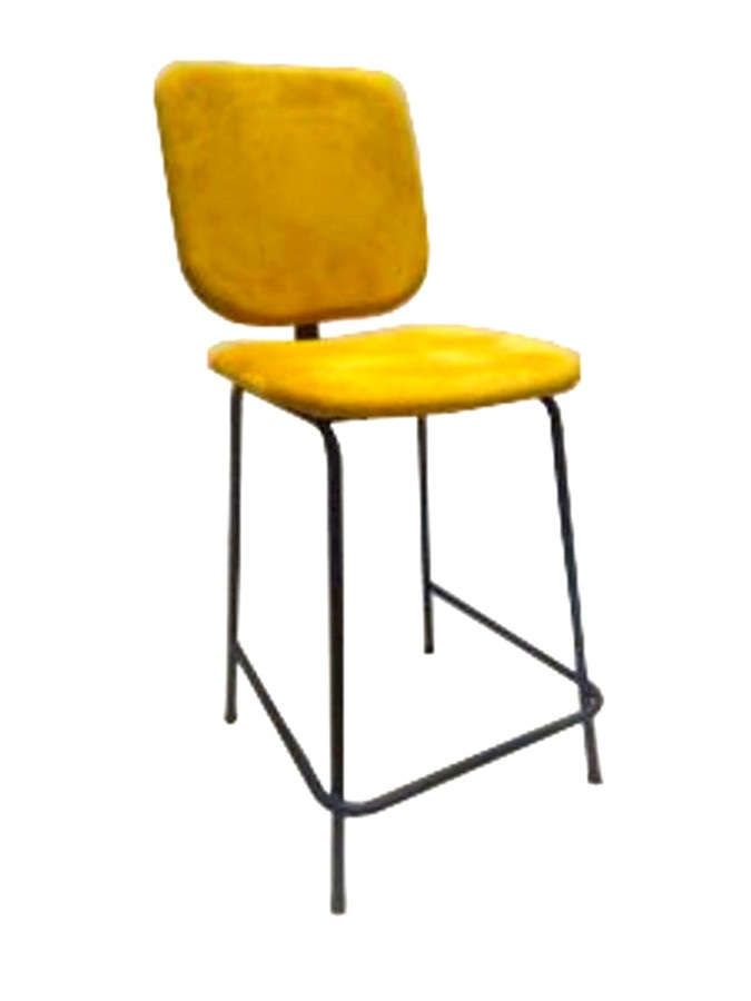 Σκαμπό με μεταλλικό σκελετό. Κάθισμα και πλάτη επενδυμένα με ύφασμα.