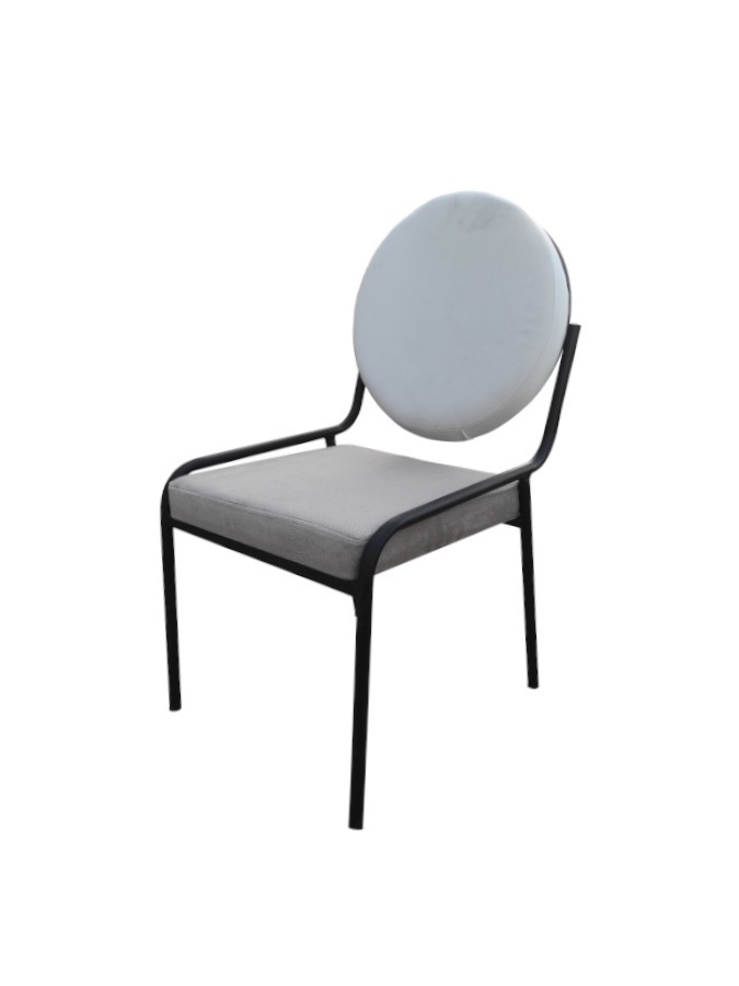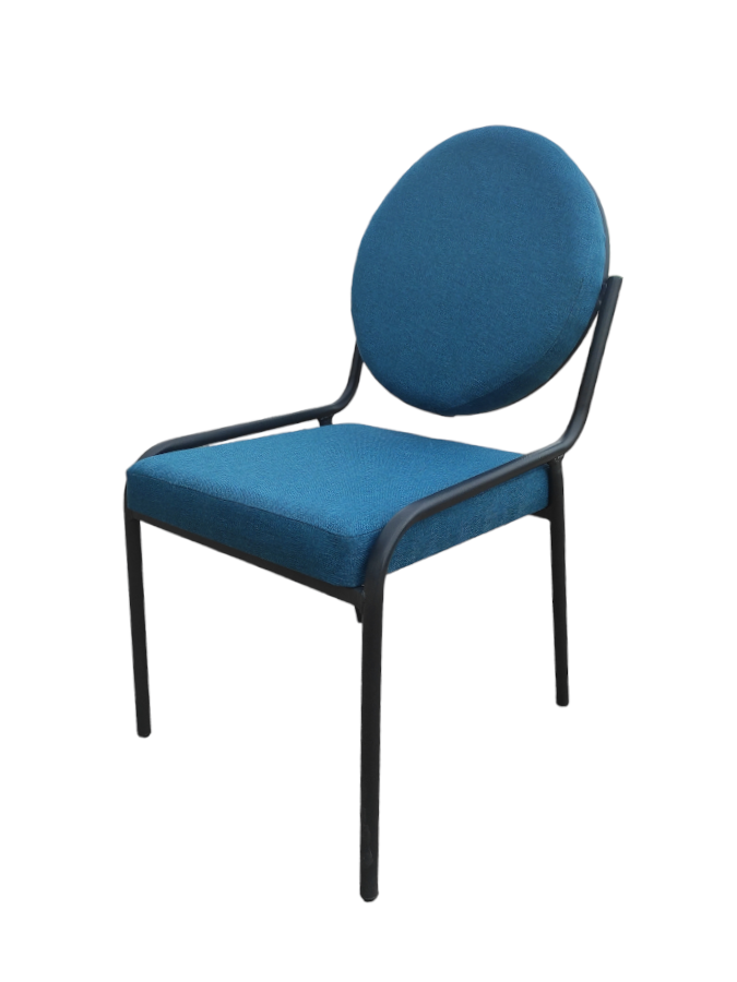Καρέκλα με μεταλλικό σκελετό και κάθισμα με πλάτη επενδυμένο με ύφασμα.
