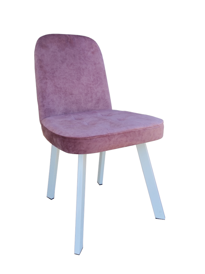 Καρέκλα με μεταλλικό σκελετό και επενδυμένη με ύφασμα.