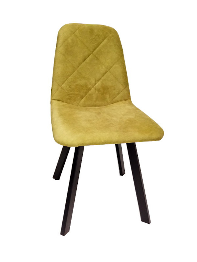 Καρέκλα με μεταλλικό σκελετό και κάθισμα επενδυμένο με ύφασμα ή δερματίνη.