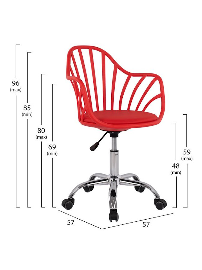 Καρέκλα γραφείου σε έναν άψογο συνδυασμό inox και μαύρου/κόκκινου/λευκού/γκρι πολυπροπυλενίου για να αναδείξει κάθε γωνία του σπιτιού σας ή του επαγγελματικού σας χώρου.