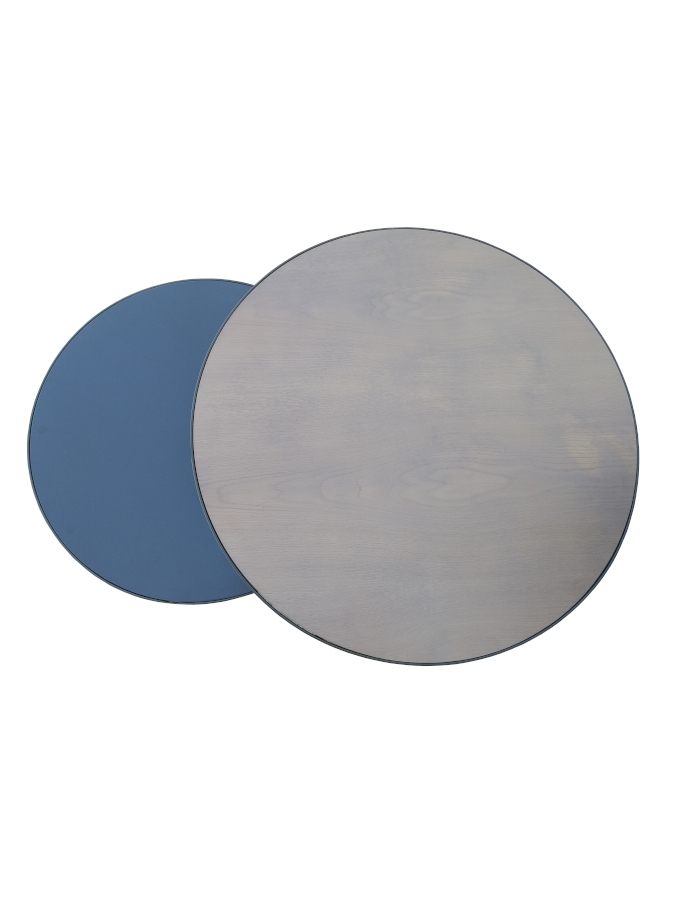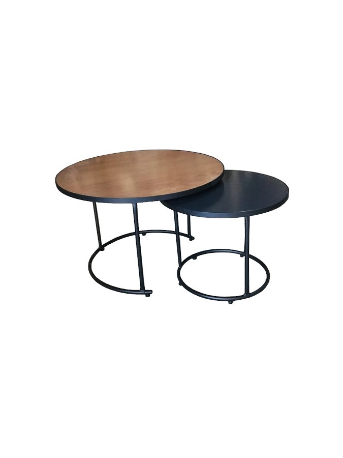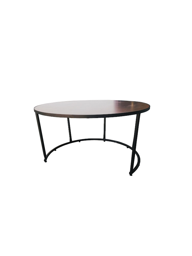 Τραπέζι με μεταλλικό σκελετό και ξύλινη επιφάνεια.