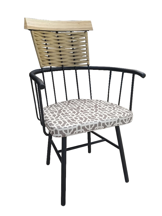 Μεταλλική καρέκλα με αποσπώμενο ή σταθερό μαξιλάρι και με πλέξιμο στην πλάτη. Μπορείτε να επιλέξετε :