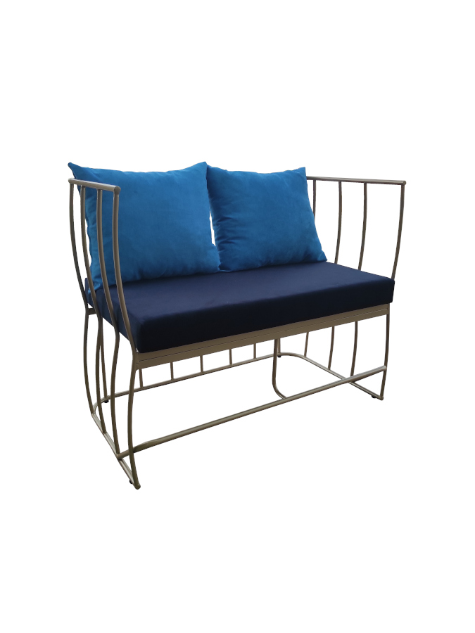 Καναπές με μεταλλικό σκελετό και αποσπώμενα μαξιλάρια με ύφασμα.