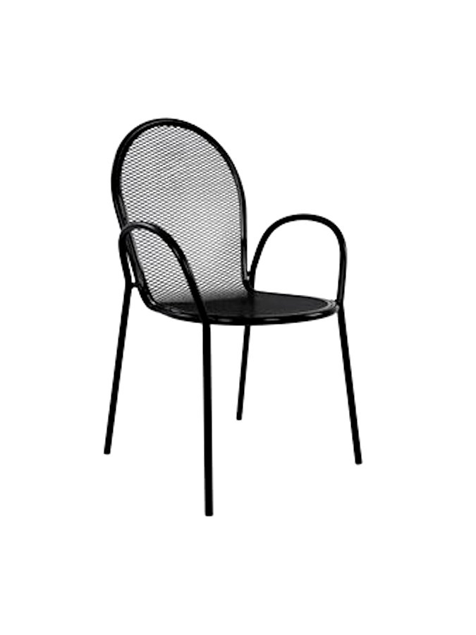 Πολυθρόνα από μέταλλο με διάτρητη πλάτη και κάθισμα βαμμένη με ηλεκτροστατική βαφή.