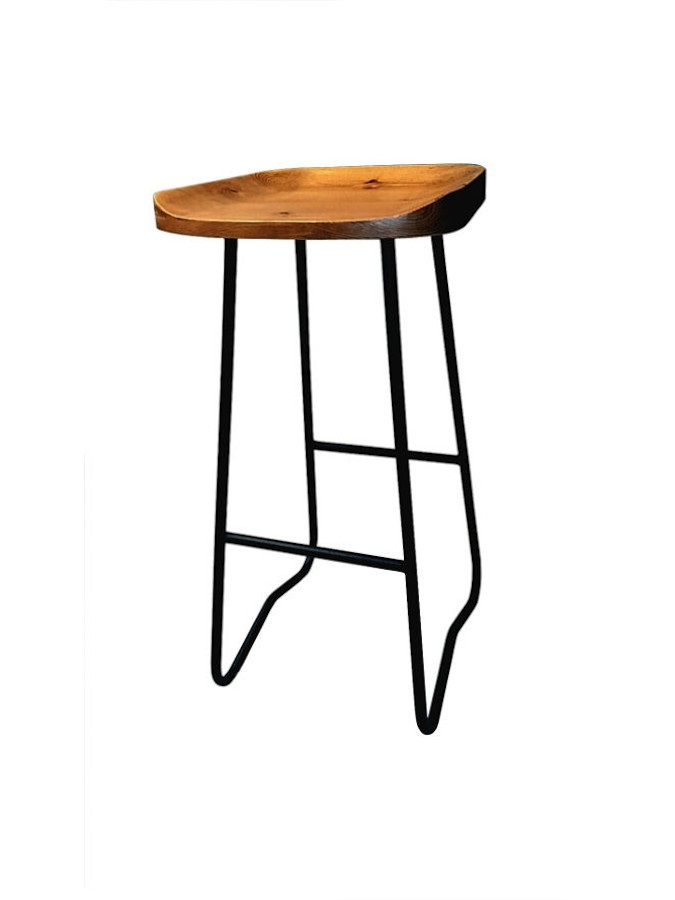 Σκαμπό με μεταλλικό σκελετό και ξύλινο κάθισμα.