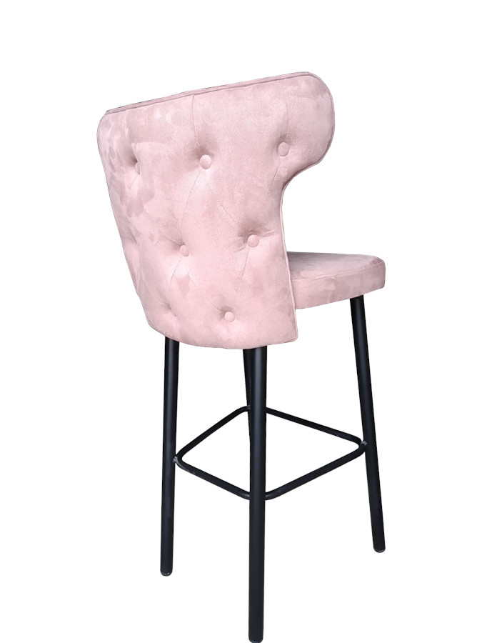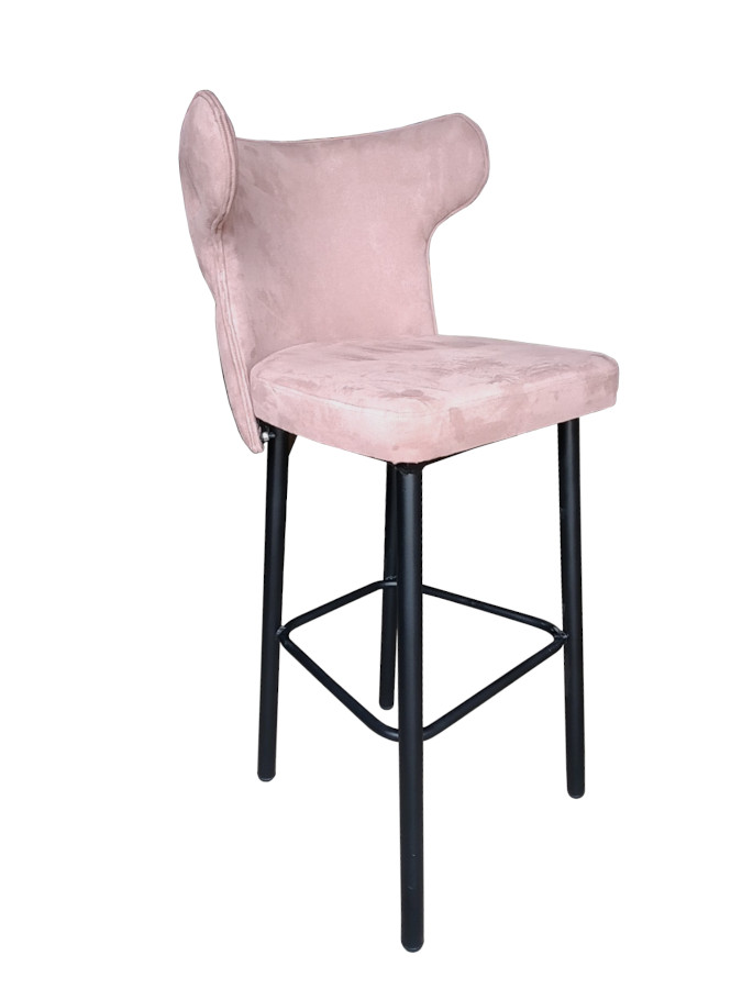 Σκαμπό με μεταλλικό σκελετό και κάθισμα με πλάτη επενδυμένα με ύφασμα.