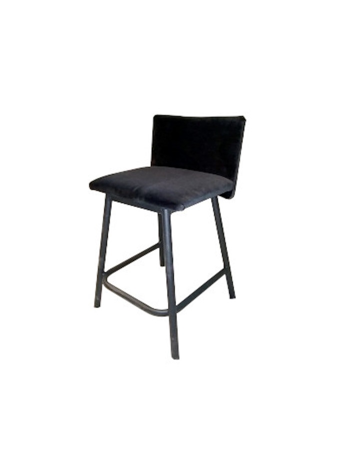 Σκαμπό με μεταλλικό σκελετό επενδυμένο με ύφασμα στο κάθισμα και στην πλάτη.