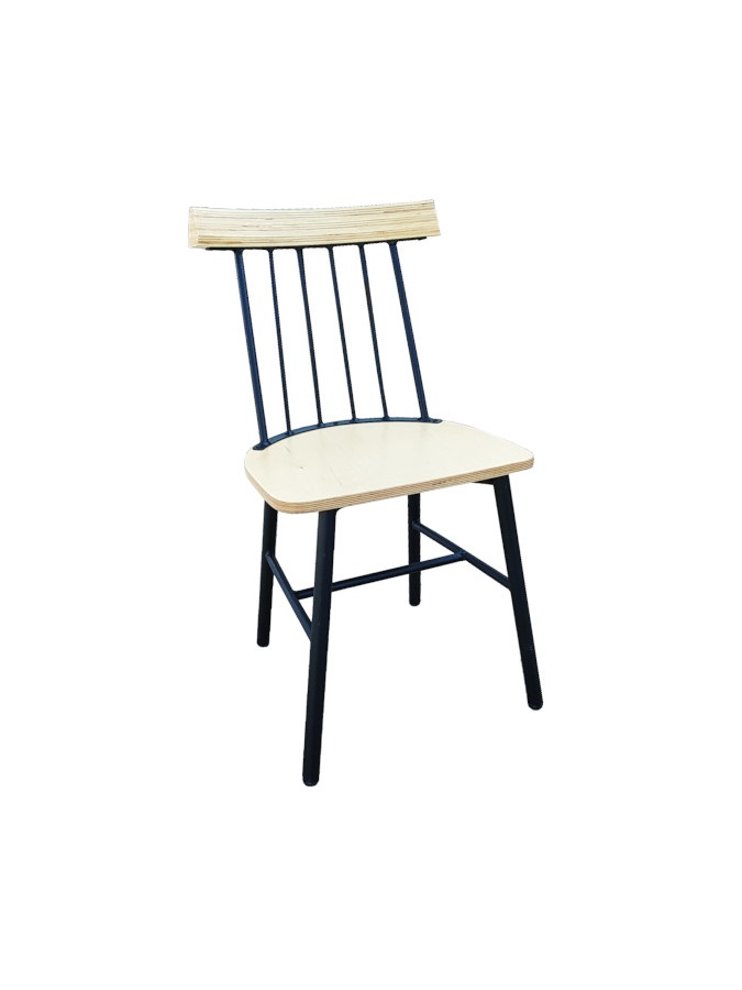 Καρέκλα με μεταλλικό σκελετό και ξύλινο κάθισμα.