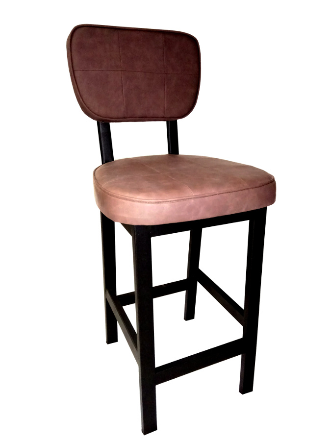 Σκαμπό με μεταλλικό σκελετό χρώματος μαύρου και επένδυση δερματίνης στο κάθισμα και στην πλάτη.