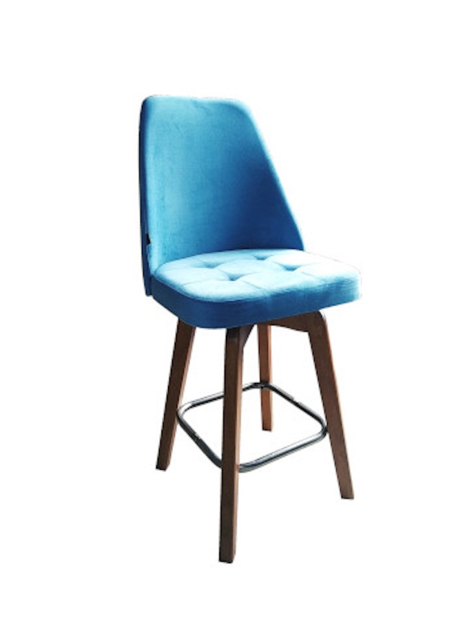 Σκαμπό με ξύλινο και μεταλλικό σκελετό με επένδυση υφάσματος και δερματίνης σε κάθισμα και πλάτη.