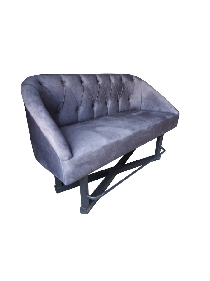 Καναπές με μεταλλικό σκελετό επενδυμένο με ύφασμα.
