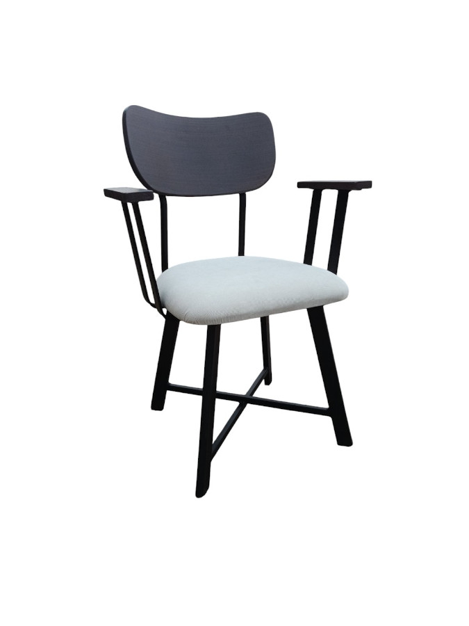 Πολυθρόνα με μεταλλικό σκελετό ξύλινη πλάτη και επενδυμένη στο κάθισμα από δερματίνη ή ύφασμα.