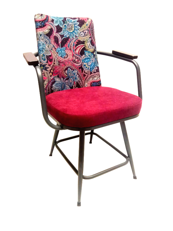 Πολυθρόνα με μεταλλικό σκελετό και επένδυση από ύφασμα ή δερματίνη.