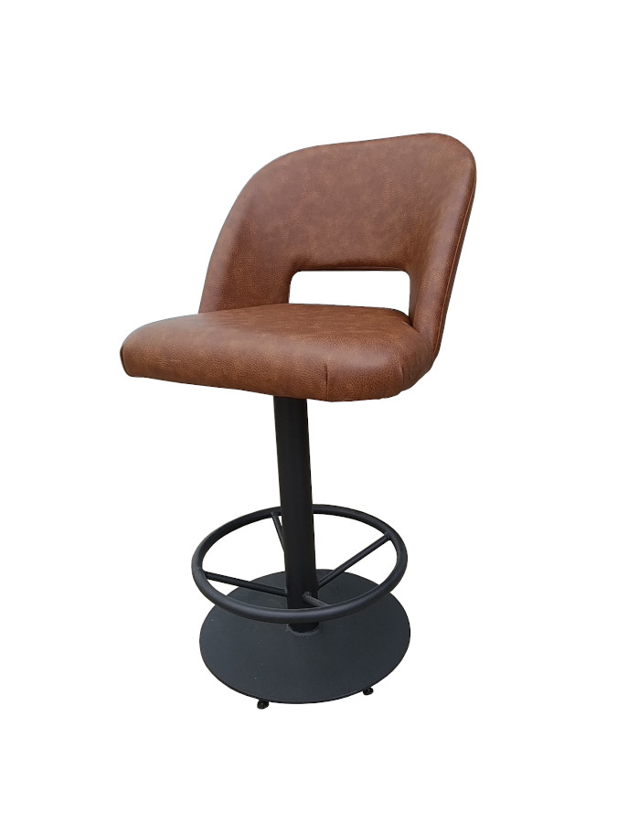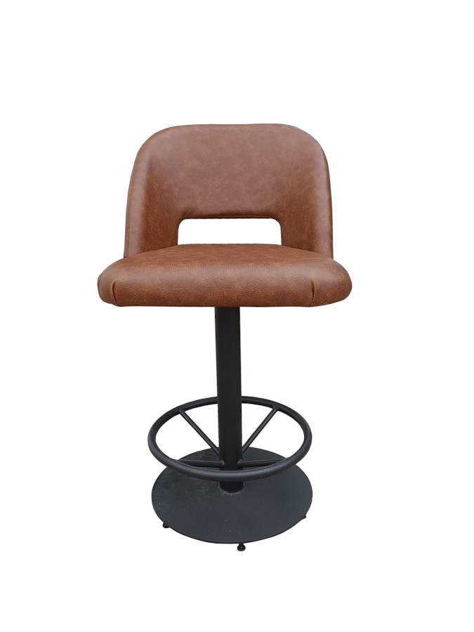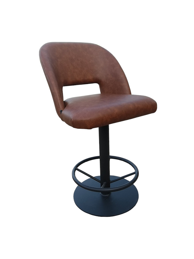 Σκαμπό με μεταλλικό σκελετό και κάθισμα επενδυμένο με ύφασμα.