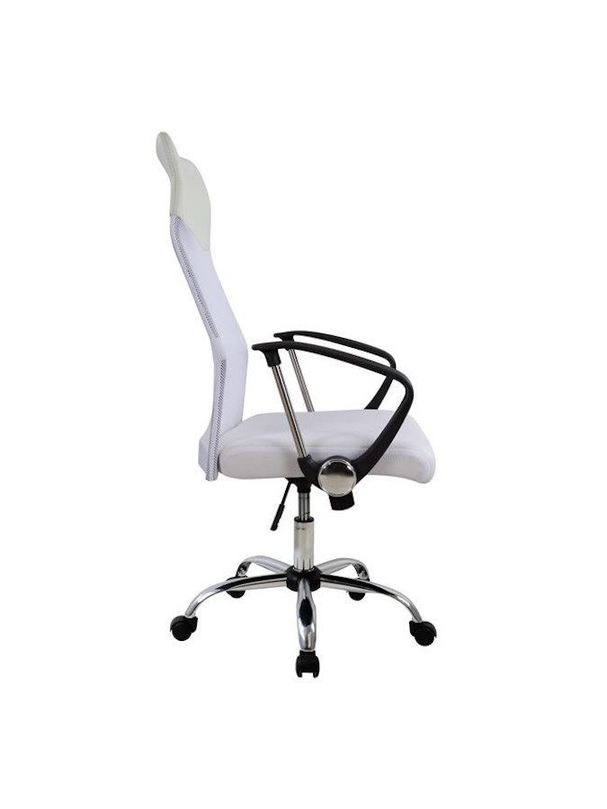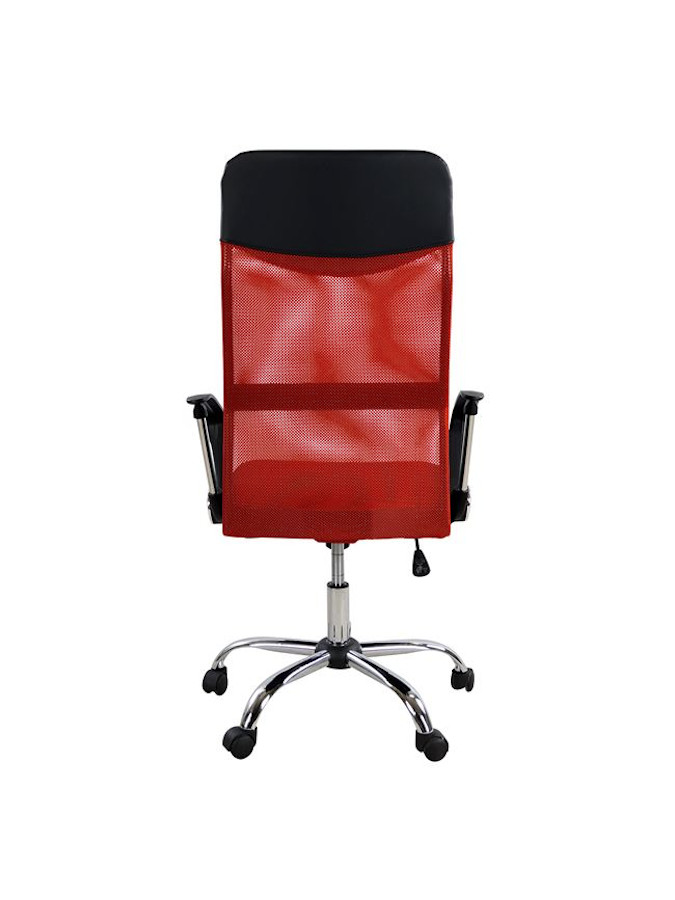 Η πλάτη της καρέκλας είναι από ύφασμα mesh για να αφήνει την πλάτη να αναπνέει και να μην ιδρώνει, επίσης έχει ενσωματωμένο μαξιλαράκι για το κεφάλι από PU υλικό σε μαύρο χρώμα.