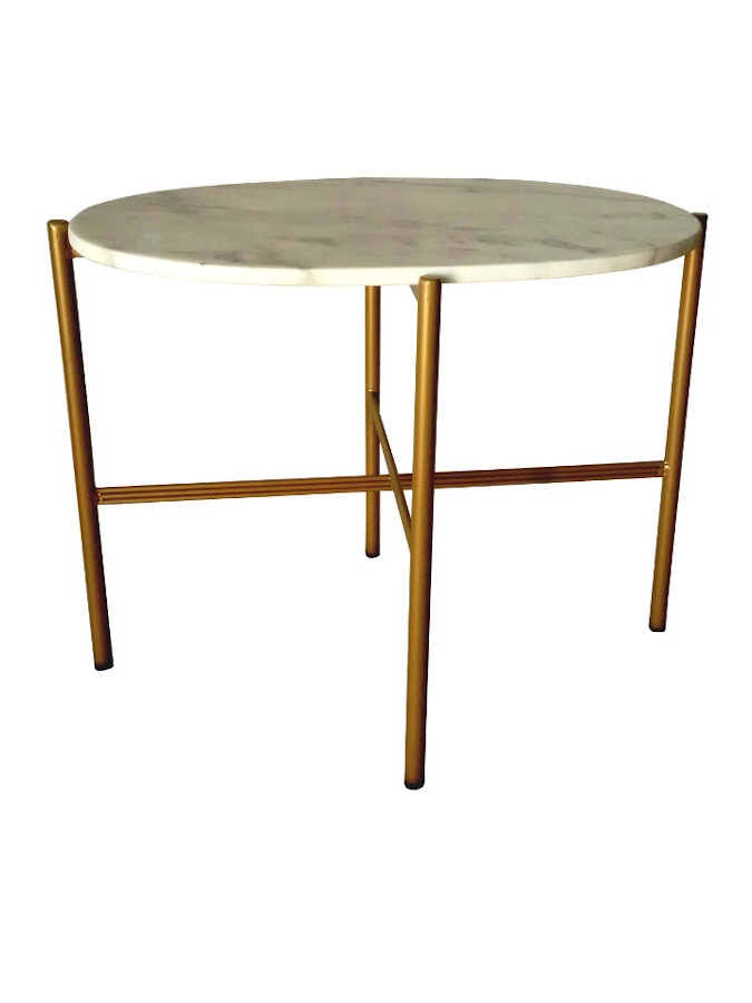 Τραπέζι με μεταλλικό σκελετό και επιφάνεια λευκό μάρμαρο.