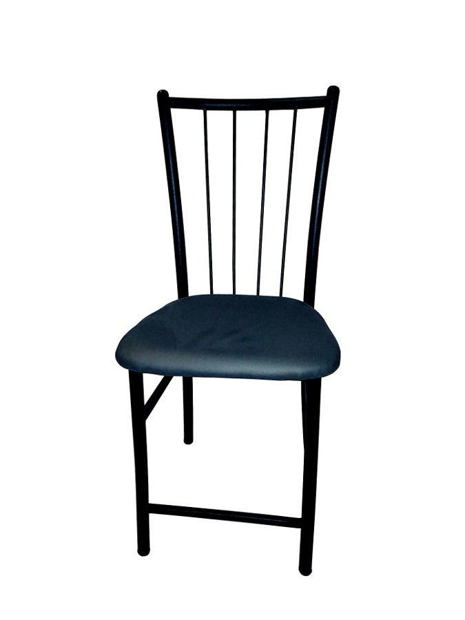 Μεταλλική καρέκλα χρώματος μαύρο με δερματίνη στο κάθισμα.