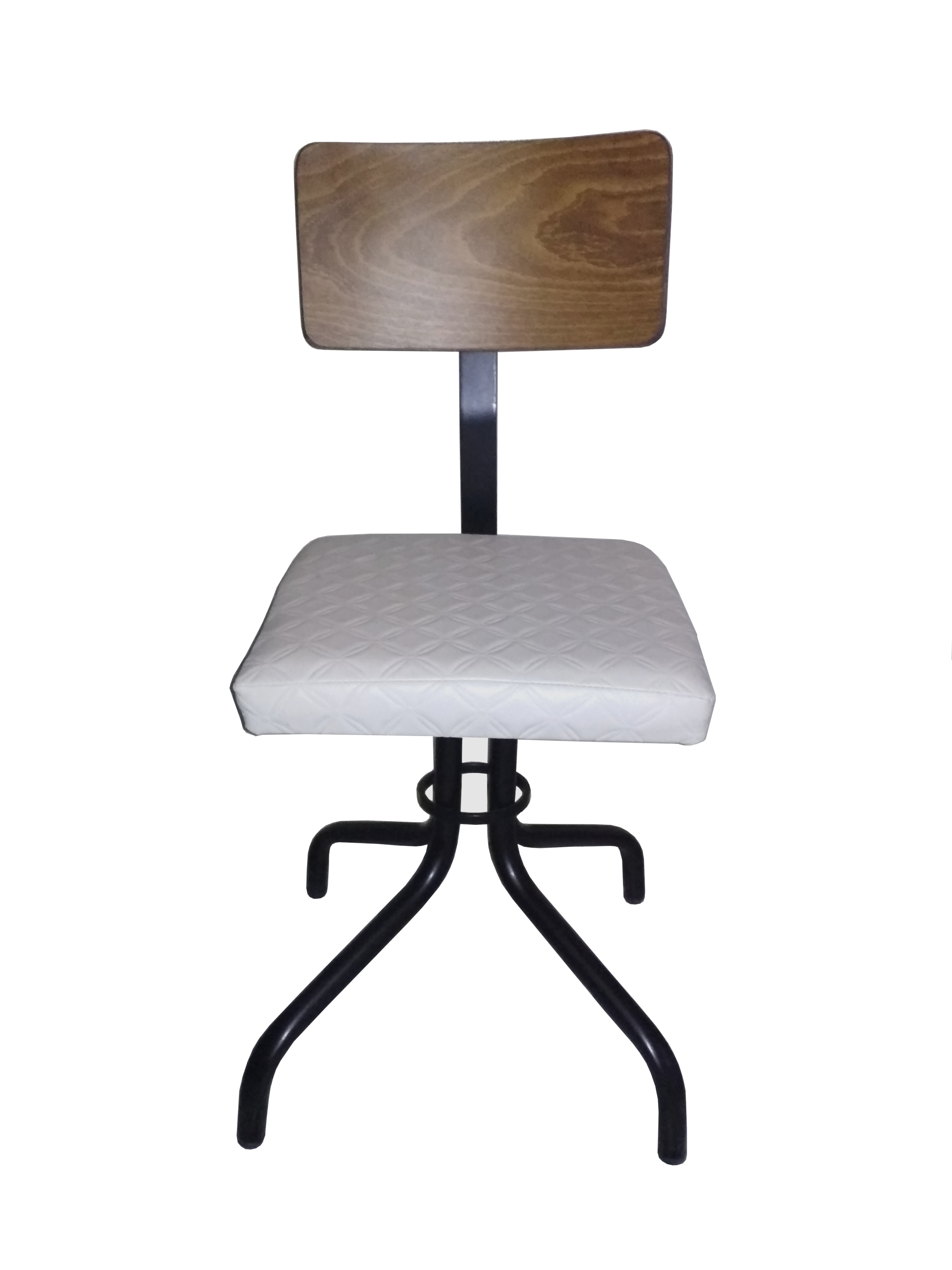 Καρέκλα με μεταλλικό σκελετό και ξύλο στην πλάτη. Κάθισμα επενδυμένο με ύφασμα.