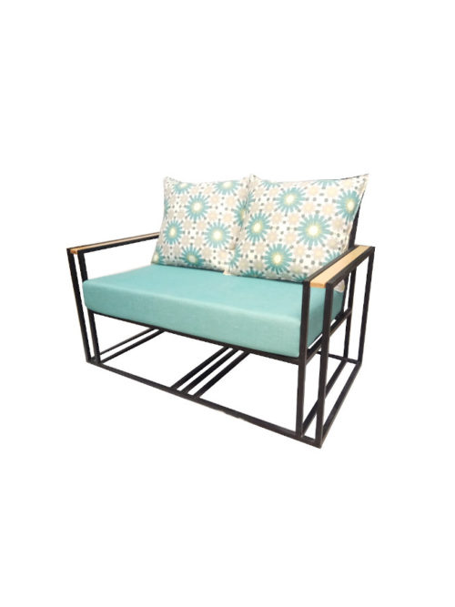 Διθέσιος καναπές με μεταλλικό σκελετό επενδυμένο με ύφασμα.