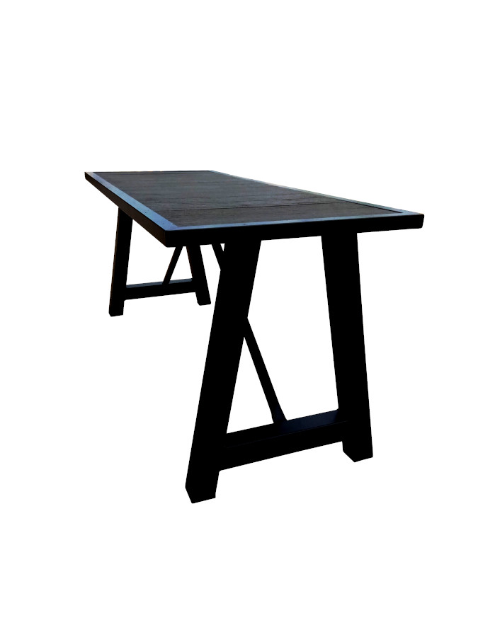 Τραπέζι με μεταλλικό σκελετό και με ξύλο PVC στην επιφάνεια.