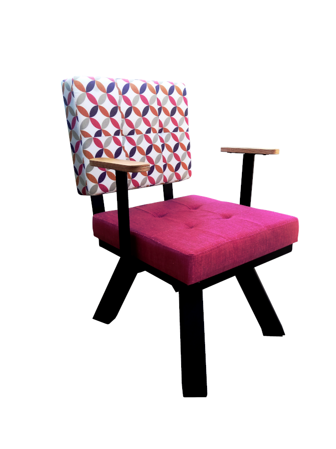 Καρέκλα με μεταλλικό σκελετό επενδυμένη με ύφασμα.