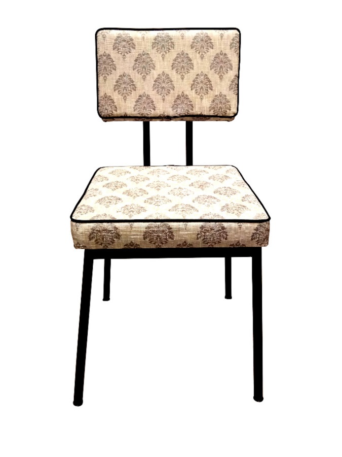 Μεταλλική καρέκλα με επένδυση υφάσματος.