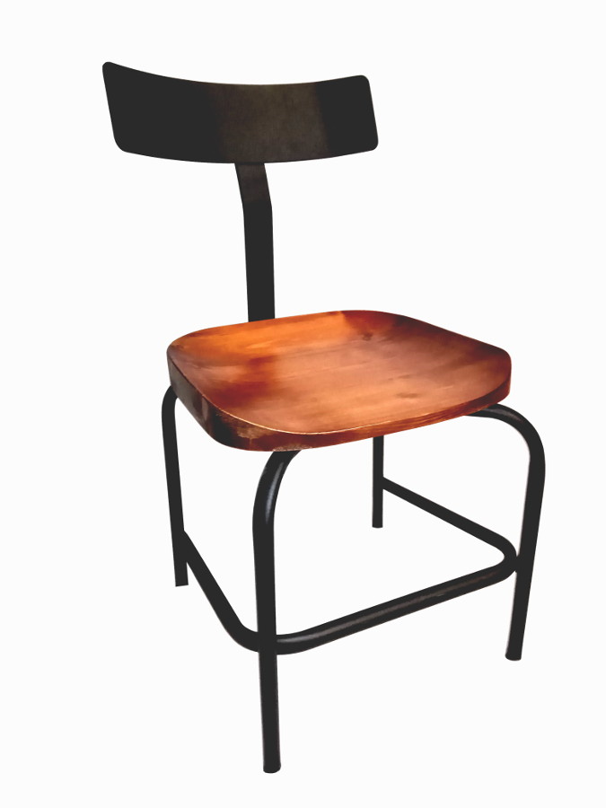 Μεταλλική καρέκλα χρώματος μαύρου με ξύλινο κάθισμα.