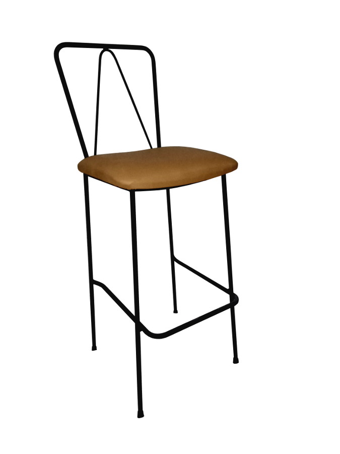 Σκαμπό με μεταλλικό σκελετό και με επενδυμένο κάθισμα με δερματίνη.