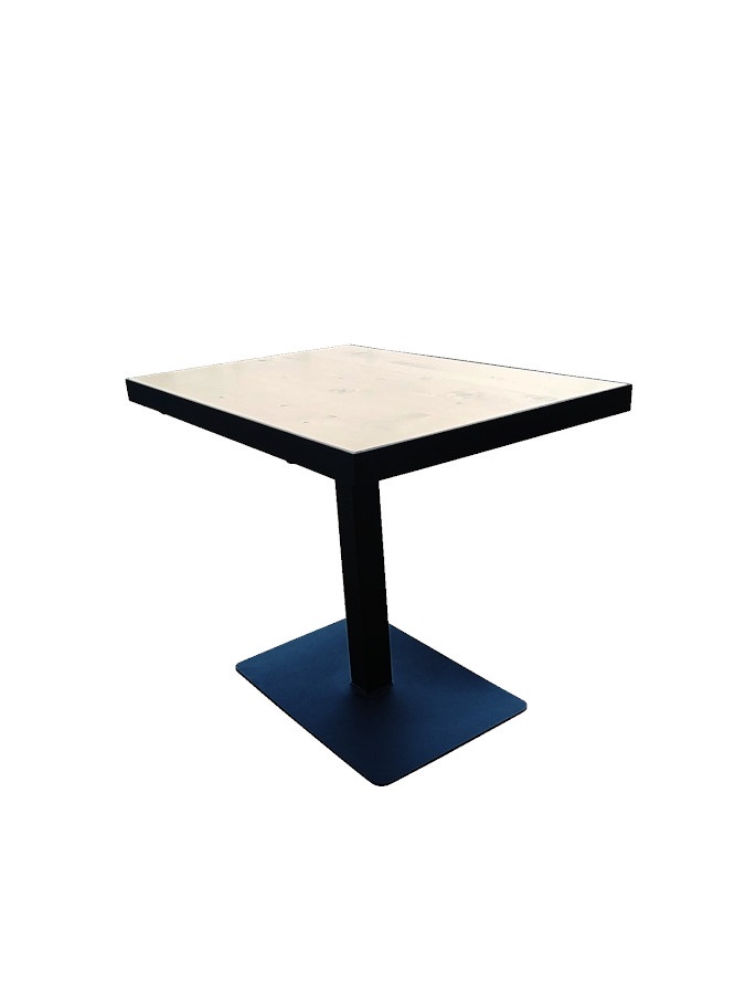 Μεταλλικός σκελετός με επιφάνεια ξύλου.