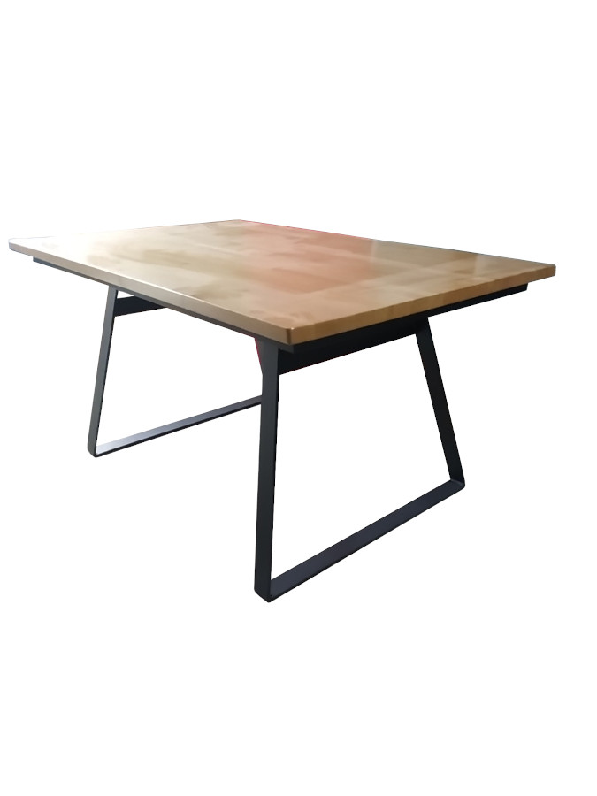 Τραπέζι με μεταλλικό σκελετό και επιφάνεια μασίφ ξύλο πεύκο.