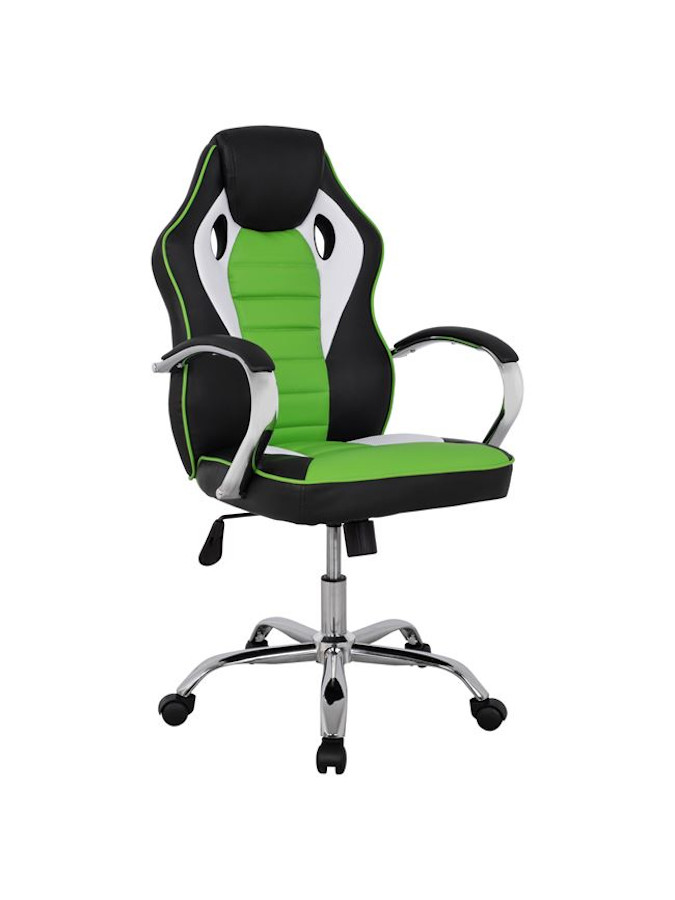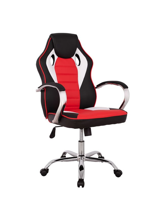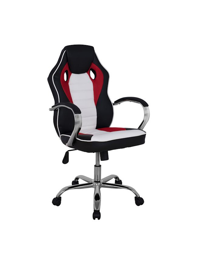 Καρέκλα Γραφείου Gaming με δερματίνη, μπράτσα, αμορτισέρ χρωμίου, κατάλληλη για αυτούς που αφιερώνουν πολλές ώρες στο γραφείο ή και στο σπίτι.